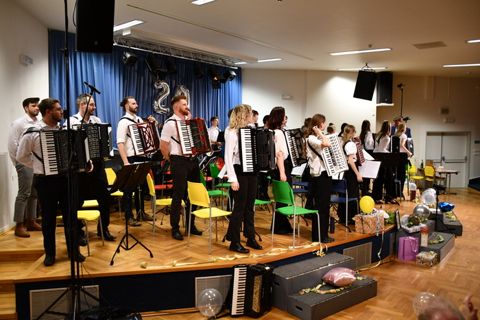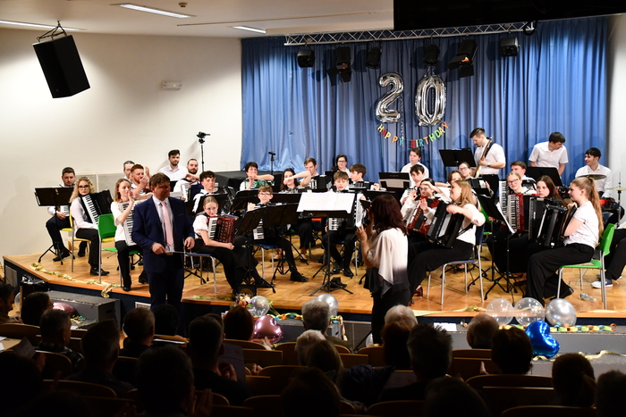 Ve středu 1.4.2026 se konal koncert k 20. výročí založení Akordeonového orchestru ZUŠ Chválenická. Na skoro dvouhodinovém koncertu různorodého repertoáru si zahrál orchestr i s bývalými členy. Oceněni byli vedoucí souboru za jejich dlouholetou práci s dětmi. Doufáme, že dalších 20 let bude neméně úspěšných. Děkujeme, že jste přišli a užili si to![]()